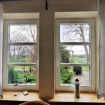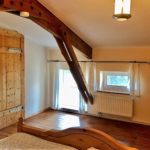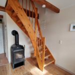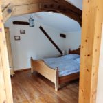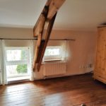 Im Obergeschoss ist der ursprüngliche Charme des Getreidespeichers durch den originalen Holzfußboden, die offene Balkenlage und eine reduzierte Deckenhöhe noch spürbar.